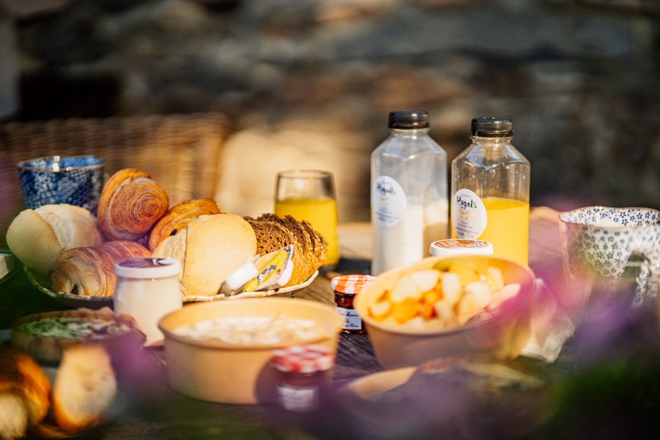 Le matin, un petit-déjeuner local vous attend : produits frais, saveurs de la région, douceur du réveil dans la forêt. Un moment simple et authentique, parfait pour débuter la journée.