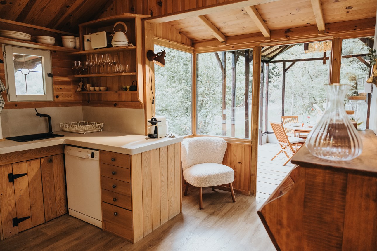 Le matin, le calme reprend toute sa place. Installé sous le patio, un café fumant entre les mains, on regarde le soleil se lever sur les arbres. Le Refuge se révèle alors comme un lieu rare : une parenthèse simple et profonde, faite pour savourer, respirer et retrouver ce qui compte vraiment.