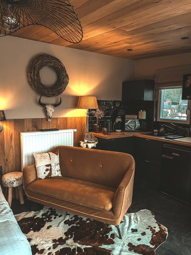Chez Suzette est une tiny house posée au cœur de la campagne ardennaise, un petit refuge lumineux où la nature entre par les fenêtres à chaque heure du jour. Les matériaux bruts, la douceur des teintes et le rythme calme des prairies environnantes composent une atmosphère apaisante, idéale pour un moment de déconnexion à deux.