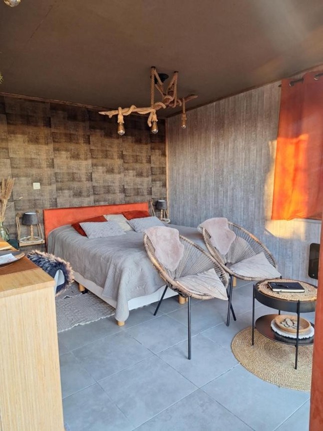 Cynthia est une hôte chaleureuse et à l’écoute, qui met un point d’honneur à accueillir chaque voyageur avec une attention toute particulière. Chez Temps 1solite, tout est pensé pour lâcher prise : pas de vaisselle, pas de tracas, Cynthia s’occupe de tout. Soutenue par son mari menuisier, qui donne vie à chacune de ses idées, elle a façonné un lieu à son image. En franchissant la porte, on entre dans un véritable cocon, soigneusement imaginé, dont on n’a plus envie de repartir.