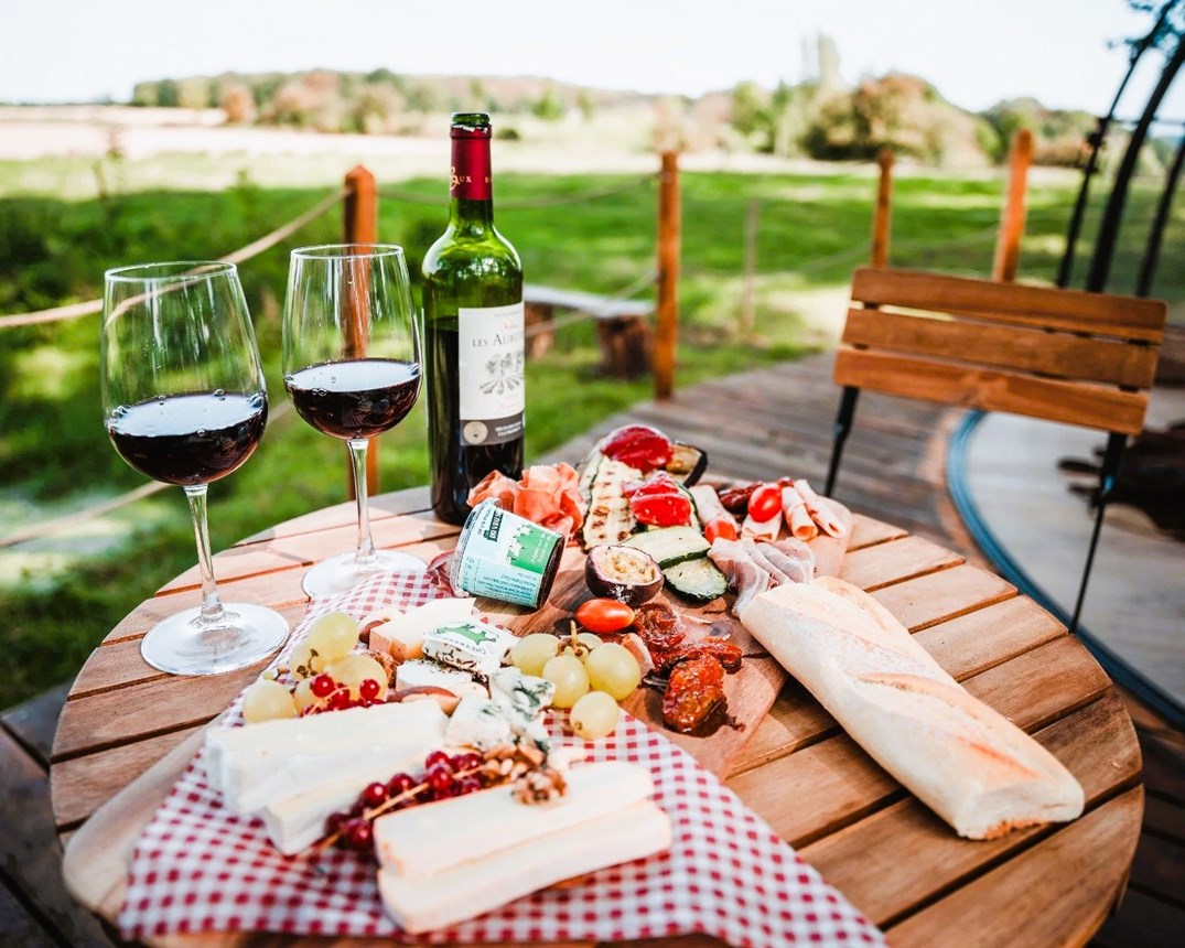 La soirée se prolonge dans un spa privatif, entièrement tourné vers la nature. Le chaud, la vapeur, la vue… c’est un moment suspendu, intime, qui apaise autant qu’il émerveille. Puis vient l’heure du repas : une découverte gourmande des produits locaux, accompagnée d’un vin du pays et de petites douceurs. Un dîner sans artifice, mais rempli de saveurs qui racontent la région avec sincérité.