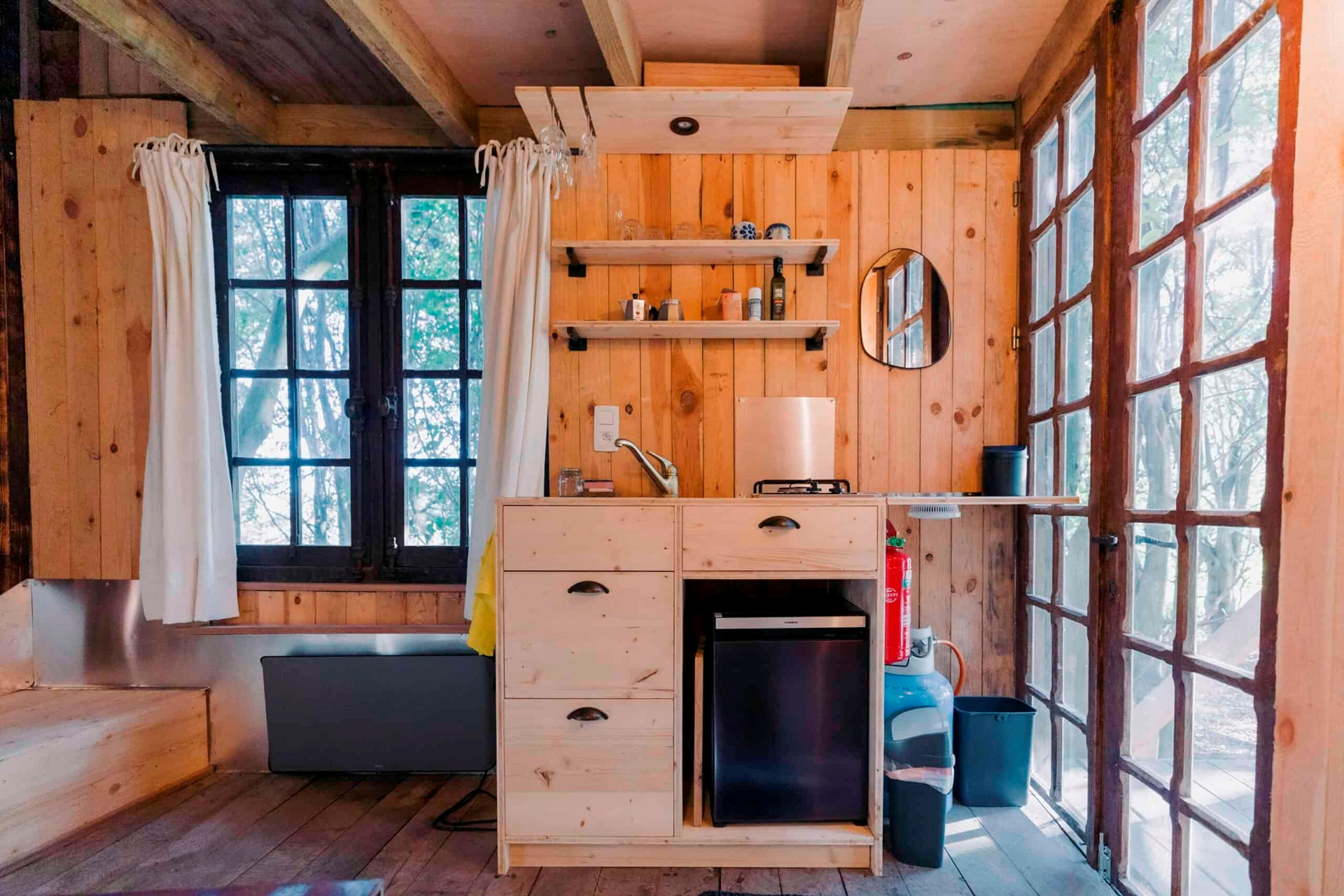 Les séjours en hiver y sont possibles pour les plus aventureux, le chauffage permet d’aller jusque 18°c dans la cabane lorsqu’il fait 0°c.