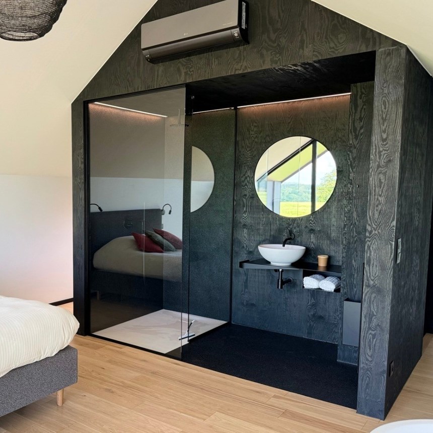 Durbuy Insolite offre une expérience haut de gamme où l’élégance contemporaine rencontre la sérénité de la nature. Ces lodges aux lignes épurées, posés dans un écrin de verdure, ont été imaginés comme de véritables refuges modernes. Chacun dispose d’un bain nordique privatif, tandis qu’un sauna et une piscine ouverte sur le paysage sont accessibles pour prolonger la détente dans un cadre apaisant.