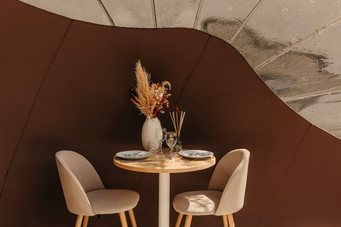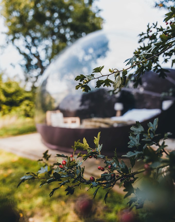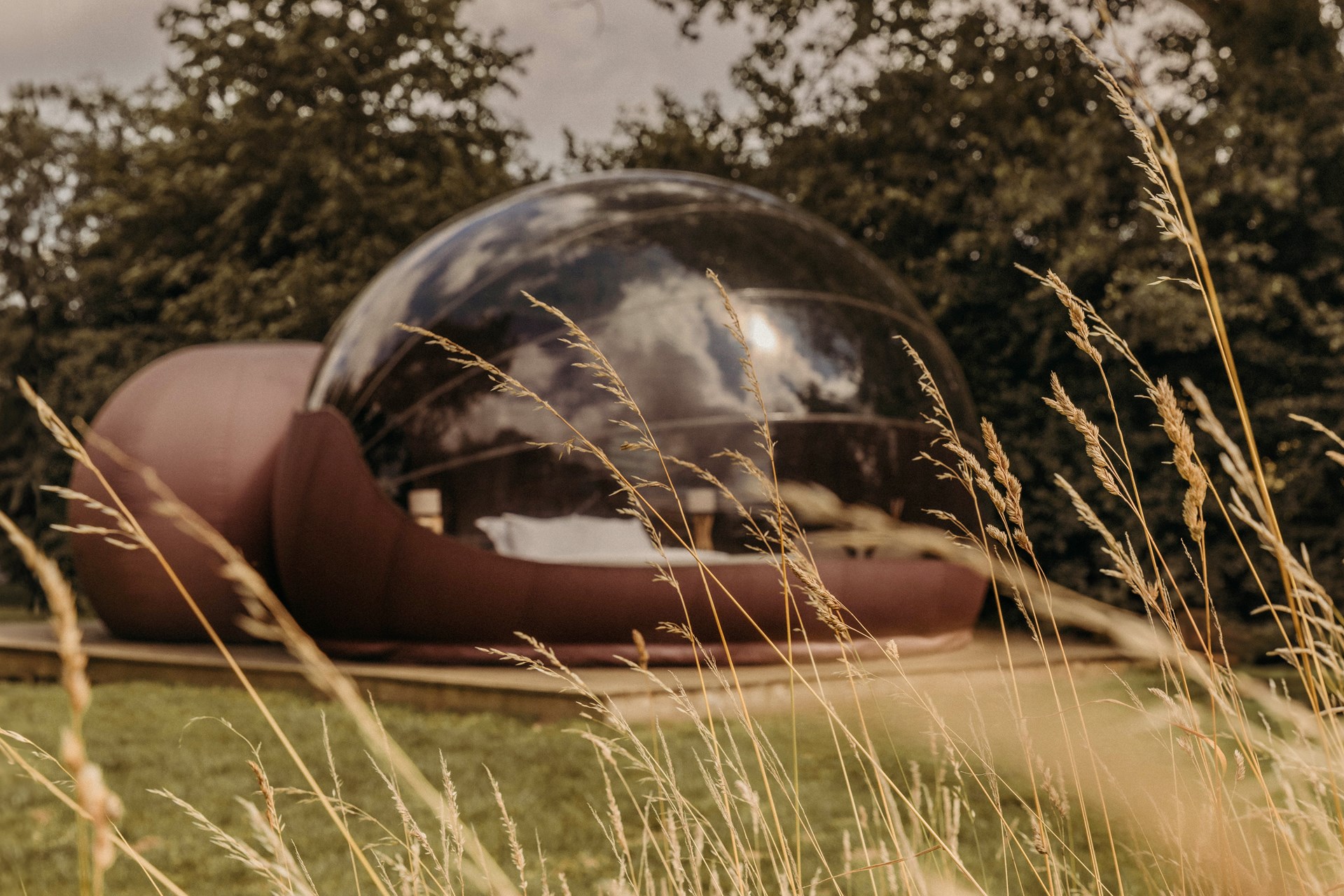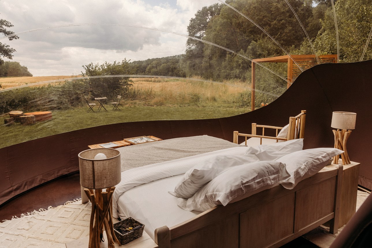 À l’intérieur, la bulle mêle simplicité et confort, avec un lit généreux et une ambiance intime où rien ne vient perturber la sérénité du moment. Tout autour, la nature devient la seule décoration, présente mais douce, offrant un sentiment d’immersion totale sans jamais perdre le confort d’une nuit bien protégée.
